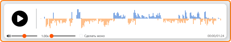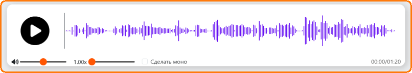 Если вы видите в плейере одноцветную форму звука, как на картинке ниже - это моно запись: