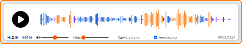 - "Автоскролл" - чтобы расшифровка прокручивалась вместе с воспроизведением записи
